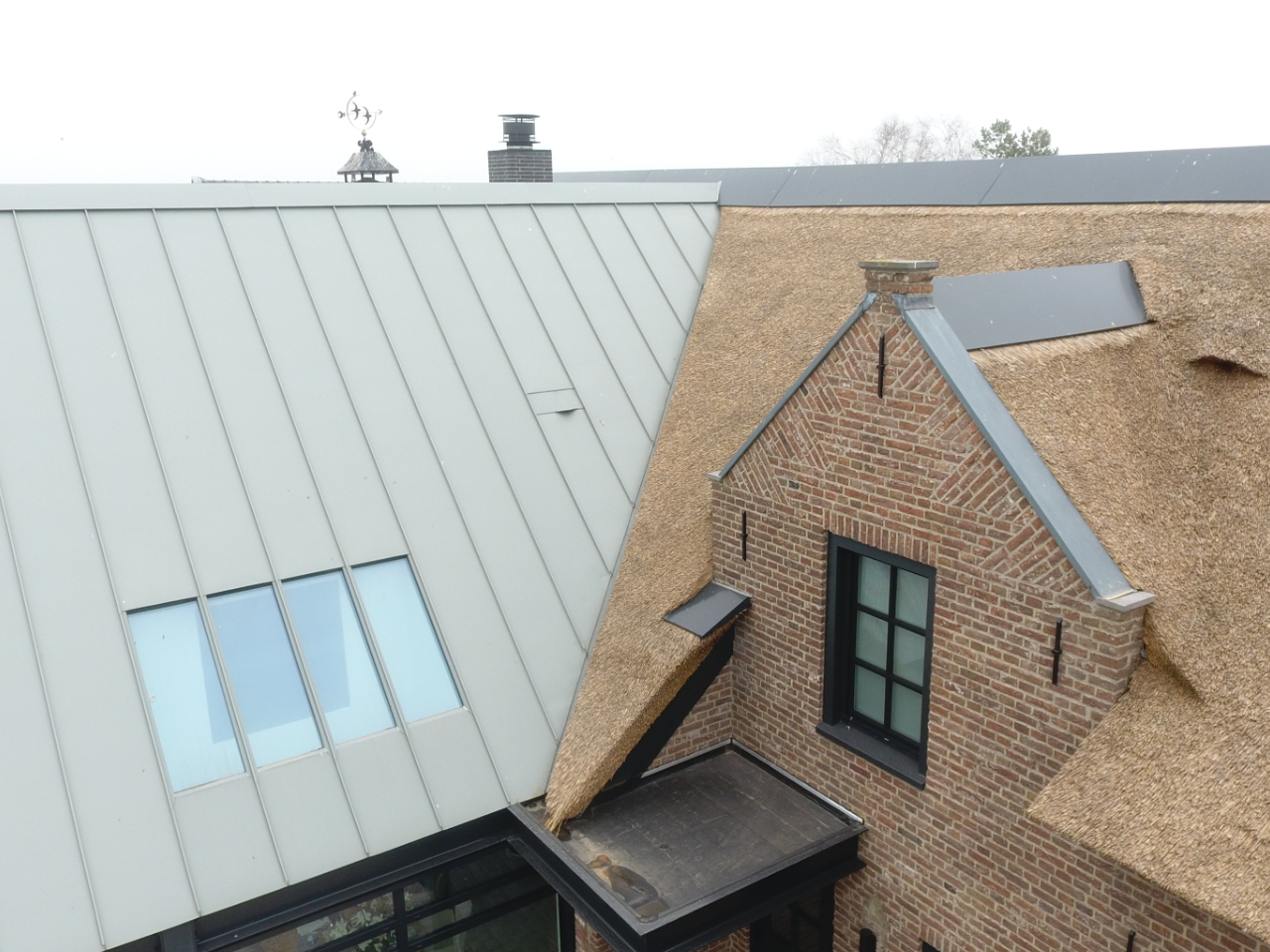 Op deze fraaie aanbouw in Eemdijk hebben wij met felsbanen een aluminium dak aangebracht. Door de bestaande bouw en deze fraaie aanbouw vormt de woning een eigentijdsgeheel.