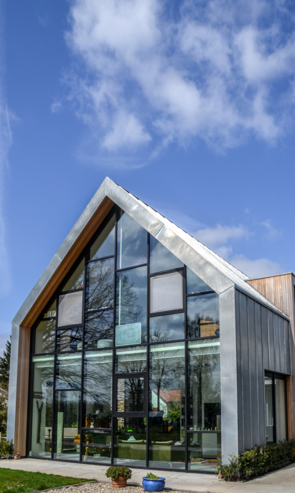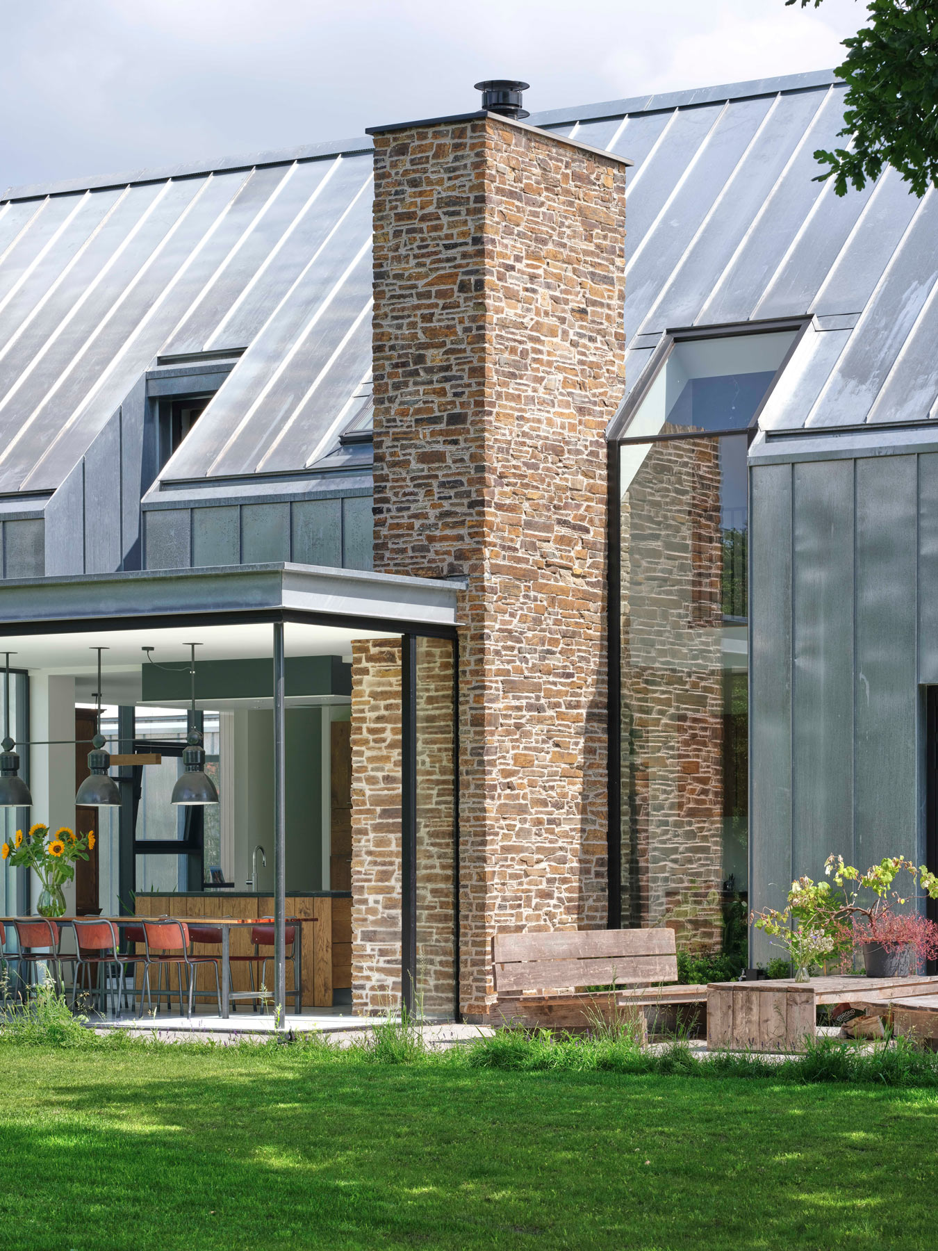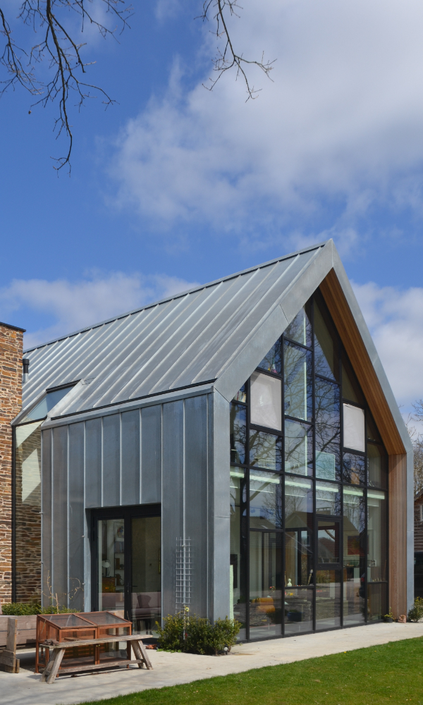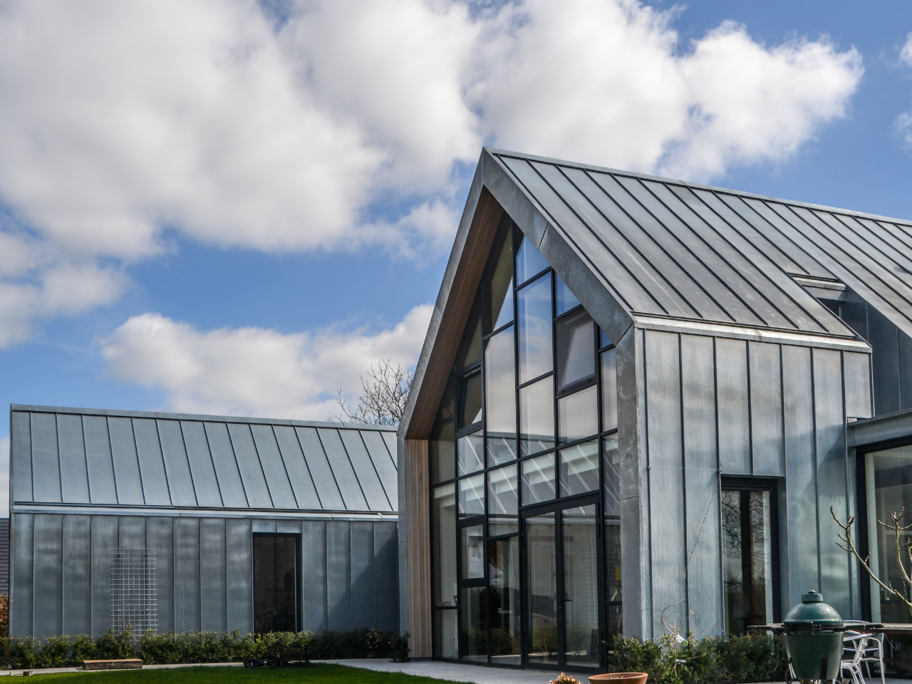 Op deze prachtige vrijstaande woning hebben wij het zinkwerk aangebracht, het dak en de gevel zijn voorzien van zinken felsbanen, walsblank 0,8mm.