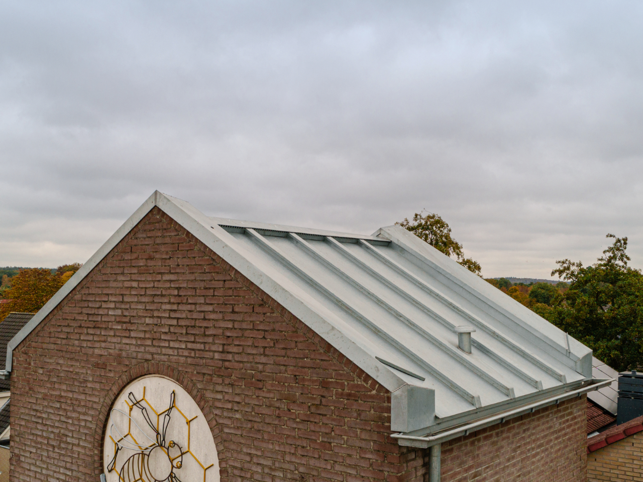 Bij dit appartementencomplex hebben wij de dakbedekking op het trappenhuis vervangen. Het betreft hier een roevensysteem uitgevoerd in walsblank zink.