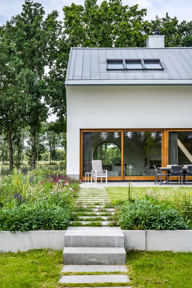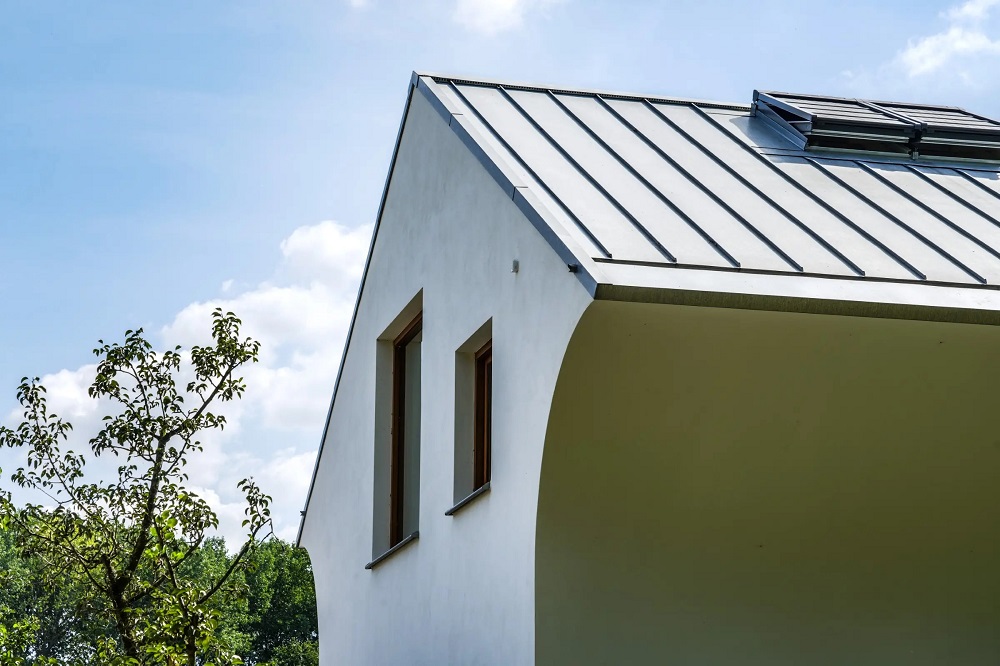 In opdracht van Bouwbedrijf van Engen is dit woonhuis voorzien van een blank zinken felsdak, ook zijn hier afdeklijsten en waterslagen in blank zink gemonteerd.