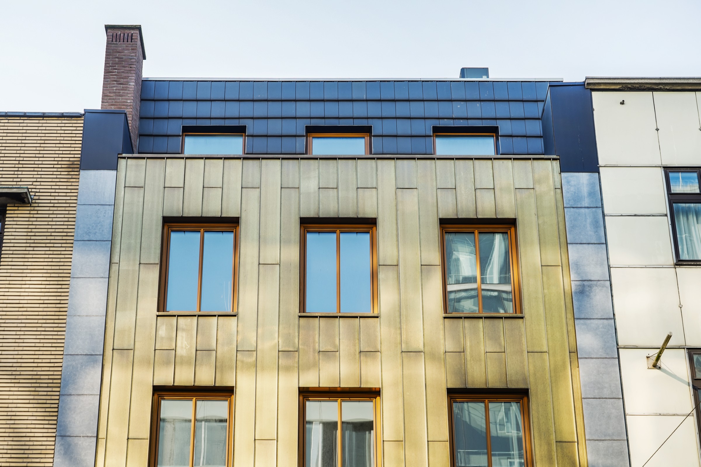 In Utrecht realiseerden wij een bijzondere gevelbekleding met Tecu Brass koper. Dit hoogwaardige materiaal geeft het gebouw direct een warme, luxe uitstraling en onderscheidt zich door zijn unieke verouderingsproces.