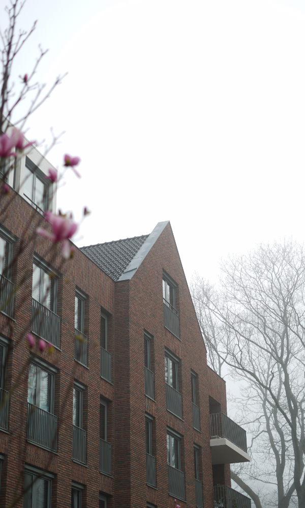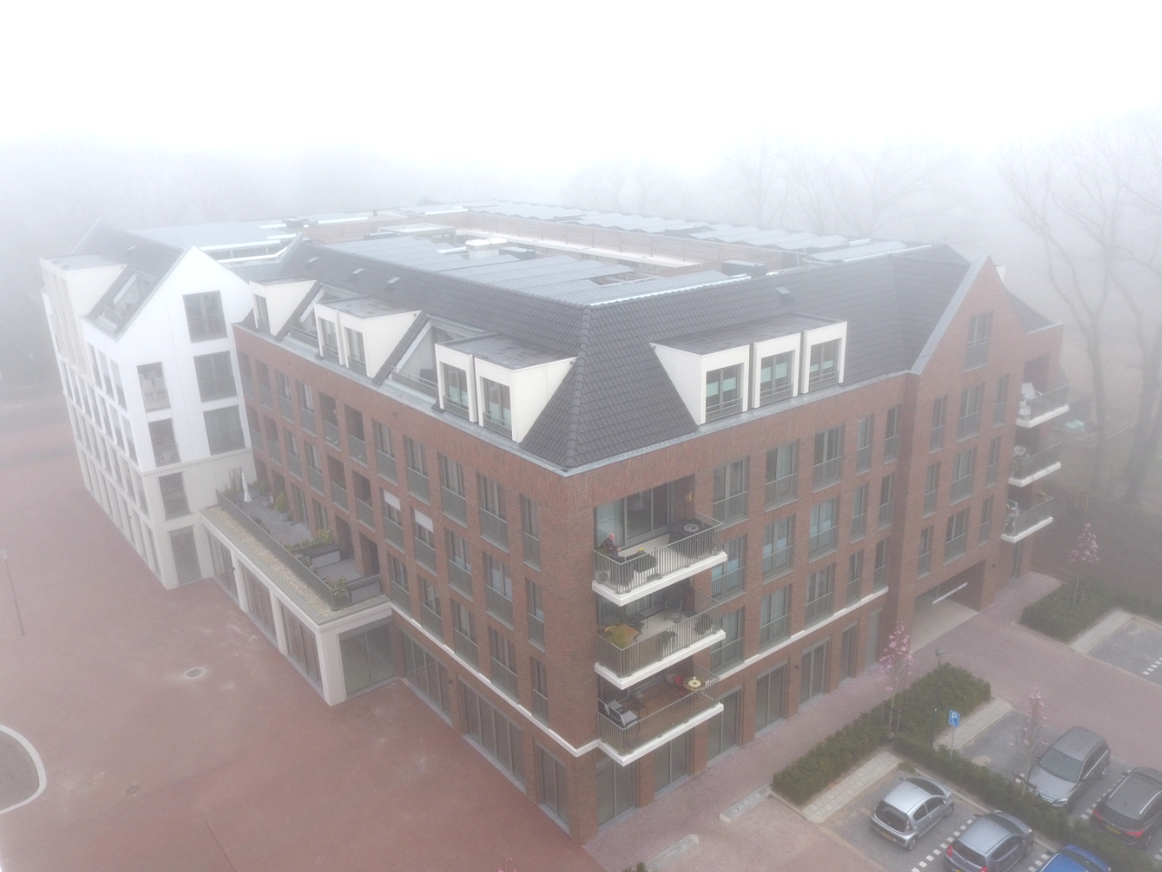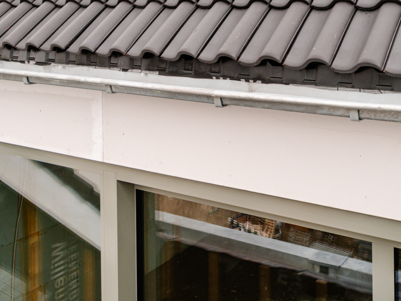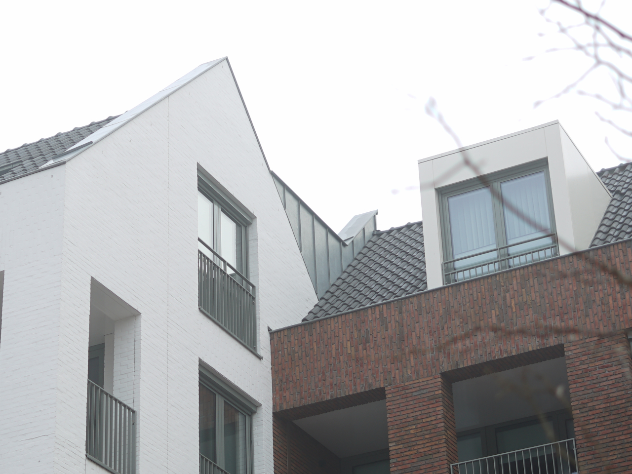 Het appartementencomplex is rondom voorzien van zinken goten. De dakkapellen zijn voorzien van verholen goten.